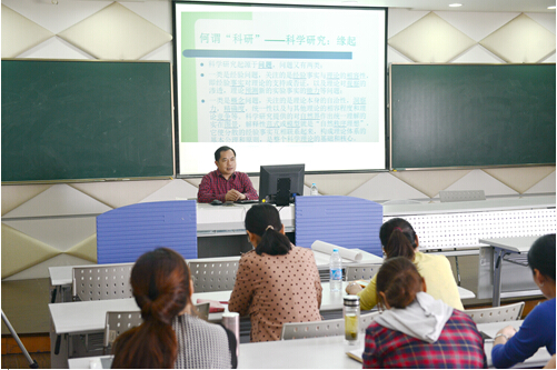 许岳在专题讲座上向各位骨干教师下发了“骨干教师科研能力高级研修班”具体方案,督促大家着手准备科研论文的写作与相关项目的申报,希望大家能够在此次培训上有所收获,获得相关科研论文的发表与项目的成功申请。