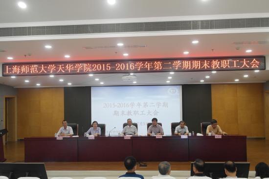 2016年7月5日上午9:00,学校在晖华楼报告厅召开了2015—2016学年第二学期教职工大会,学校董事长邹荣祥、执行董事长石伟平、党委书记韩晓玉、校长叶才福、总校监郭伟奇、学校顾问陆建非在主席台前就坐,校务委员会全体成员及学校教职工出席了会议。会议由执行董事长石伟平主持。