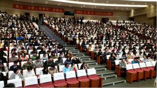 2016年11月1日18:00,晖华楼大礼堂灯火通明,座无虚席,我校学术讲师团本学期继续开讲。通识学院院长助理兼通识教学部主任聂晓晶老师为来自教育学院、管理学院和健康学院的1300余位新生以及若干高年级学生奉献了一堂名为《读书与做人》的精彩讲演。本场讲座的顺利举行,标志着我校学术讲师团讲座正式入驻新落成的千人大礼堂。
