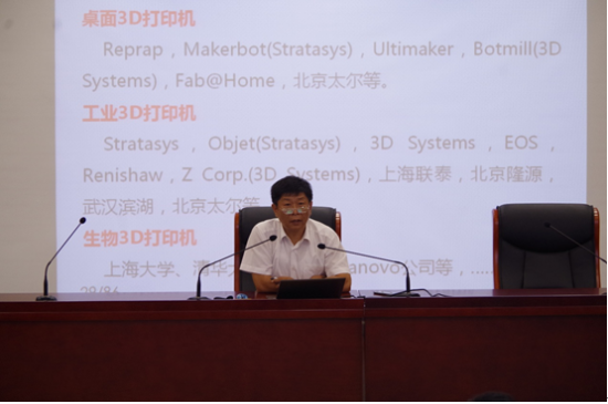 了解完3D打印的基本概念,胡教授又详细地介绍了3D打印技术的发展史以及几家知名的3D打印公司。如今,3D打印技术已在设备、工艺和材料等方面取得了长足的进步,在研究,工程和教学等领域都占据了独特的地位。尤其值得一提的是,3D打印开辟了不用刀具制作零件的途径,为传统方法不能或难于制造的零件提供了一种全新的制造手段。