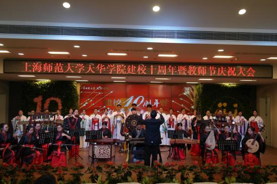 (“天华雅乐团”在建校十周年庆祝大会上表演)