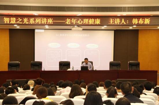 2017年10月11日下午14:45,健康学院于晖华楼报告厅举办了“智慧之光”系列讲座《老年心理健康》。讲座由健康学院院长祝亚平主持,健康学院教师以及全体学生出席。