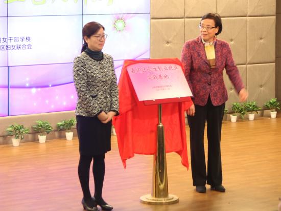 (张丽萍和韩晓玉为嘉定区女性就业创业基地揭牌)