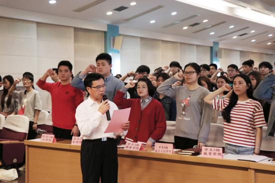 (全体新党员进行入党宣誓)