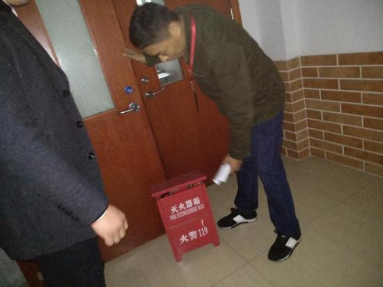 根据曹书记会议精神,学保处于下午15:00针对教学区各楼宇进行了全覆盖的消防安全检查,通过检查发现了不少安全隐患,其中随意挪动消防灭火器用来挡门的现象较为普遍,个别安全指示灯固定不牢、部分灭火器压力不足等安全隐患问题突出。学保处根据检查出的问题详细记录备案,列出整改计划,并由消防科牵头,针对重点部位增购消防器材,加强重点部位器材设备保障。对各教学楼宇设置器材放置标识,做到摆放合理、规范。联合消防维保单位对有问题的应急电源和安全指示灯进行安全检查与固定,通过检查与整改,确保校园冬季防火安全工作落实有效,校园消防安全有保障。