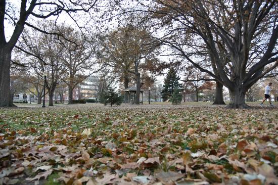 12月,伊利诺伊州立大学(ISU)校园中心Qruad,由枝繁叶茂变成满地金黄,小松鼠欢快地在地上进食,完全不忌惮行人路过,吃饱了不忘搬运一些回树洞准备过冬。有着100多年年龄的栗子树和核桃树,成了他们安全、舒服的家。室外已经接零度,曾经嬉笑热闹的草地,变得有些冷清,同学们都忙于最后的presentation大作业,为了争取拿个好分数,也收敛了起了平时的玩乐。偶尔也能看到几个穿着短衣裤的大学生从大树底下匆匆走过,走到教学楼边一闪,就躲进空调房里了。