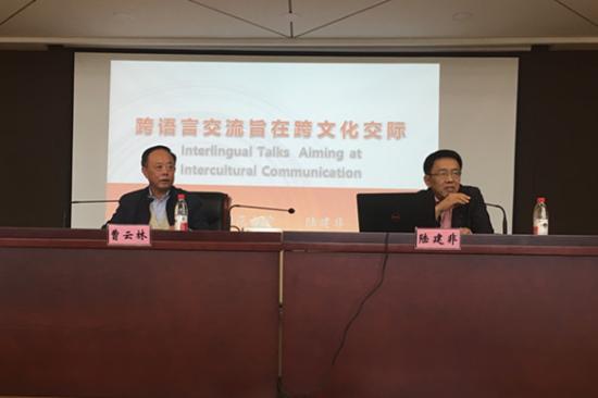 陆教授从“跨语言交流”和“跨文化交际”基本内涵出发,详细解读了跨文化交际的基本理念、基本原则和实践方法,在上海建设全球城市和天华教育国际化的特定背景下,为老师和同学们作了一场精彩、生动的学术报告。陆教授认为文化在全球化大趋势下会越来越体现多元化,每一代人都会为他们生活的时代增添一些新内容,包括吸收新事物、创造新文化;其中,既有纵向的文化继承,也有横向的文化开拓。而最重要的是文化平等观,它是实现跨文化交际的重要前提,因为,文化和语言一样,没有高低贵贱之分,每一种文化的出现和存在都有它的历史必然性和现实合理性,理解、传播、交融是跨文化交际能力的重要因素。