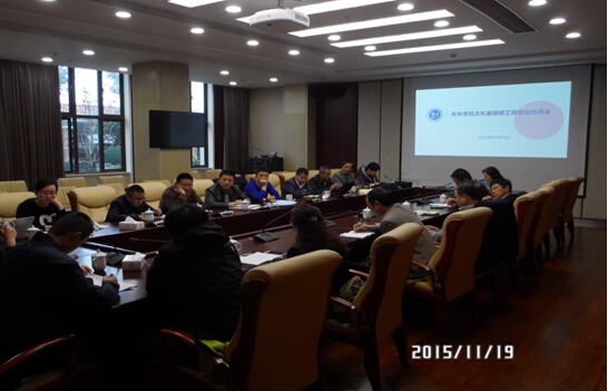 2015年11月19日上午,学校在同华楼一楼会议室召开大礼堂装修工程推进协调会。副校长朱国权,副总校监张伟大,校长助理吴国兴,资产处处长朱清,副处长董海霞,设计单位、土建施工单位、空调及音视频供应商相关负责人与技术人员出席会议。会议由资产处处长朱清主持。