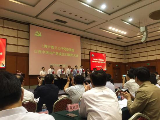 2016年6月28日上午,市教卫工作党委系统庆祝建党95周年大会在上海科学会堂国际会议厅举行。大会以“弘扬先进典型事迹,推进系统党的建设,推动上海教育、卫生和食药监事业深化改革、创新发展”为主题,表彰了市教卫工作党委系统“两优一先”及“优秀共产党员·师德标兵·医德标兵”,以及市教卫党委系统党建调研课题优秀成果。我校党委被评为上海市教卫党委系统先进基层党组织。