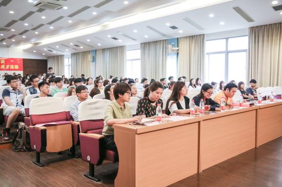 接着,天华骄子代表徐玮祎、优秀班助理代表王梦欣分享了他们的学习和工作的感悟。他们用自己的成绩、用行动让同学们体会到了榜样的力量,他们的学习和工作经验给大一同学带来了新的启发和思路,对他们信心树立、学习技巧等方面起到了非常重要的引领作用。杨媛欣宇代表16级实习班助理发言:他们将会承载着学长们的祝福奋力前行,在未来的工作中向优秀班助理学习,拼搏奋斗,无私奉献。