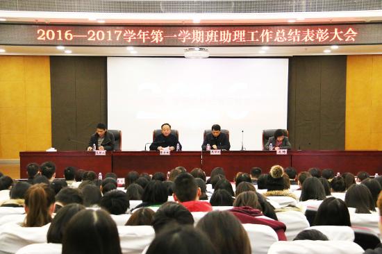 班助理,一支富有理想和责任的学生自治管理队伍,用青春、热情架起联系学生与老师之间的桥梁。为表彰和感谢优秀班助理的辛勤付出,2016年12月22日下午16:30,学校在晖华楼报告厅隆重举行2016—2017学年第一学期班助理工作总结表彰大会。校党委副书记、学保处处长曹云林,校监、学保处副处长周烨刚,校党委书记助理凌琦,学保处副处长、校团委书记包静波,各二级学院党总支书记以及班助理负责老师出席了此次大会。