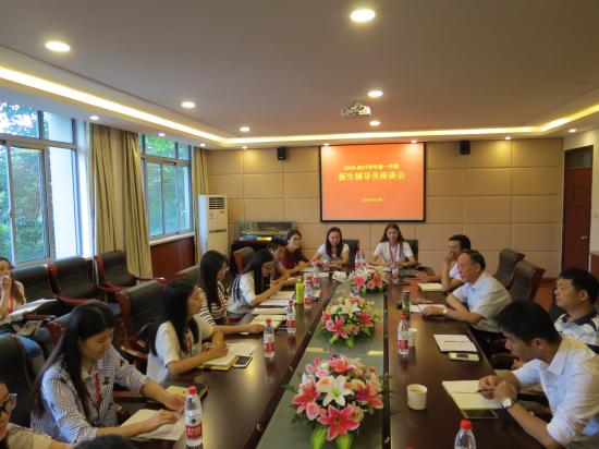 2016年9月28日上午,学保处组织2016级新生辅导员在月华楼270召开座谈会。党委副书记、学保处处长曹云林,校监、学保处副处长周烨刚,学保处副处长兼校团委书记包静波,学保处副处长刘洪伟,学校资助中心主任李婉璐老师,分管大学生医疗保障工作的王冬琴老师,以及来自各二级学院的16名新生辅导员参加了此次座谈会。