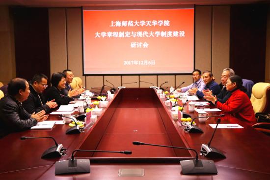 研讨会上,首先由总校监郭伟奇向与会专家介绍了天华学院的办学理念与建设情况,重点就上海民办教育综合改革项目——现代大学制度建设试点推进情况进行了详细介绍。随后,与会领导、专家就上海师范大学天华学院的制定大学章程、完善内部治理结构、创新适应自身发展的监督保障机制等方面展开深入探讨、交流,并提出指导与建设性意见。