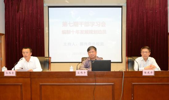 郭伟奇总校监最后强调,学校“十三五”发展规划和十年发展规划的编制工作已正式启动,希望学校各部门会后认真组织学习、讨论,深入思考。要结合干部学习会“思考未来,检讨现实”的主旨和指导思想,把规划制定过程作为统一思想、凝聚共识、汇聚智慧的过程,确实树立主人翁的责任意识,努力编制出符合学校科学发展实际、体现学校规划核心理念、经得起时间和实践检验的未来发展规划。