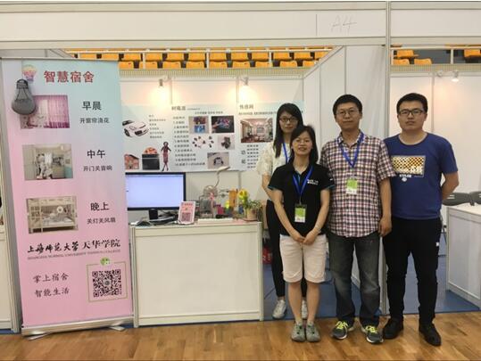 6月28日早上举行活动的启动仪式,而在下午的作品展中,我校作品给评委和现场的同学留下了深刻的印象,6月29日进行激烈的现场演讲和答辩环节,6月30日举行颁奖典礼。我校《智慧宿舍》作品荣获大赛二等奖,该作品由工学院学生胡鹏、杨露成、张春合共同完成,指导老师为周丽婕、朱怀中。此作品结合目前流行的物联网技术和3D打印技术,利用手机微信客户端,就可以控制宿舍的台灯、风扇、门、窗帘、各种用电设备,并设计了早中晚三种自动模式,成功实现了科技让宿舍生活更美好的创意理念。而《基于大数据处理的驾驶习惯监控系统》作品荣获创意奖,该作品由工学院学生咸姝卉设计,邱欣寅老师指导。