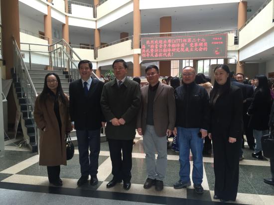 (中国外文局领导与我校万正方教授合影)