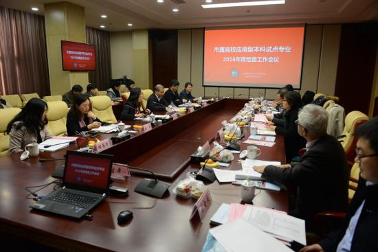 2016年12月6日下午,由上海市教委高教处桑标处长、上海应用技术大学教务处长周小理带领的教委专家组赴我校检查市级应用型本科试点专业建设。下午1点15分,检查工作会议在同华楼一楼会议室召开。校长叶才福、副校长龚春蕾、副校长兼工学院院长吴国兴、教育学院院长滕薇、管理学院院长程葆青、教务处处长杨良准以及财务处、实习实训处、科研处、质量处等部门负责人参加会议。会议由副校长龚春蕾主持。