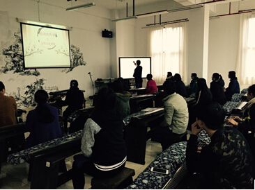 2016年3月8日中午,“古琴学习班”开始第一次古琴课程,周磊老师向大家介绍了古琴在整个中华文化中的独特地位和影响,深入浅出地介绍了古琴的历史文化背景,并向大家教授减字谱、讲解古琴的结构、及“挑”、“勾”二种弹奏指法。大家跃跃欲试,饶有兴趣地不断练习“挑”、“勾”指法。特别是周磊老师现场的精彩演奏,赢得大家阵阵掌声,感受到中国传统文化的古朴典雅的独特魅力。