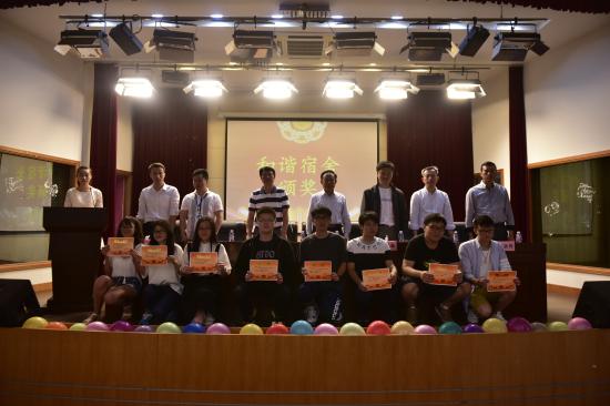 随后,周烨刚老师宣布了2015-2016学年第二学期“和谐宿舍”获奖名单,此次评选共得出金奖6间,银奖36间,铜奖153间。随着令人振奋的音乐声响起,各获奖的宿舍代表依次有序地走上讲台,接受领导老师颁发的奖状并合影留念。