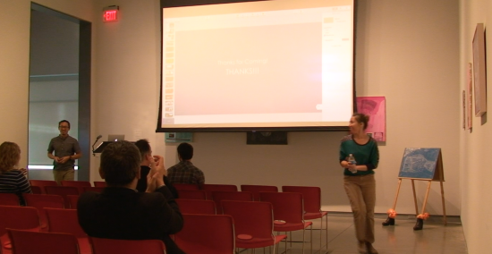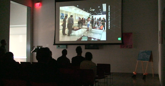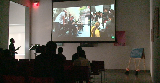 讲座中,钟华勇老师感谢了视觉艺术设计学院热情的照顾,回顾了两个月以来在伊利诺伊州立大学视觉艺术学院的教学与研究情况,介绍了在视觉艺术学院体验观摩的五门课程:Video课程、Expanded Media课程、Drawing Fundamental课程、Photography课程和Intern in Design课程。钟老师说,来到这里访学,与其说是一名老师更不如说是一名学生。他在讲座中展示了部分在教学研究中的作品,从作品的创作过程和上课的体验情况来分享在课堂上的创作经验和心得,并通过对比曾经访问的西佛吉尼亚大学,美国纽约视觉艺术学院,发现中美的现代美术教育的教学差别。