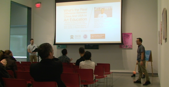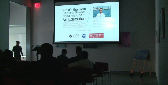11月9日,正在伊利诺伊州立大学访学的钟华勇老师在University Gallery(大学展览馆)举办了一次Visiting Artist(访问艺术家)的专题公开演讲,演讲题为《基于个人教学经验,中美现代艺术教育的真正差别》。