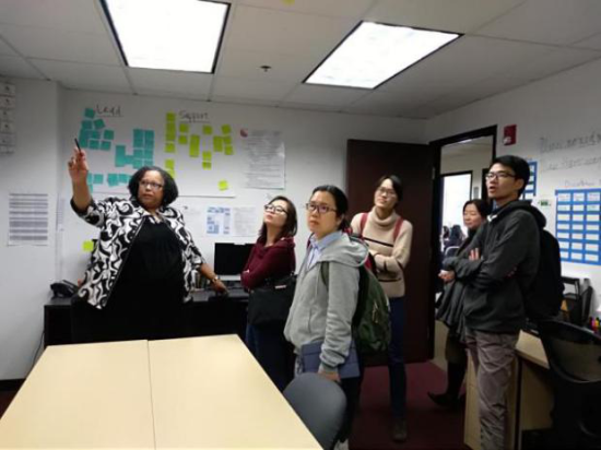 一年一度的教育学术周是加州州立大学富勒顿分校教育学院学术交流的盛典。教育学院资深教授Dr. Person以Introduction to Research and Evaluation为题给访学团全体成员介绍了做研究课题的基本方法、科学步骤和她的亲身经验。除了非常详细的方法论介绍之外, Dr. Person更是带领全体成员参观她负责的教育研究工作室。大量的藏书,设计温馨细致的讨论室、明确的分工栏让大家对教育类的研究工作有了更直观的了解,心生敬畏。Dr. Tran深入浅出地讲解如何选题、撰写和发表论文的整个过程,并让大家跟随她的引导当场实践练习,很有成效。整个讲座下来,研修成员们对于如何进行学术研究有了全面的了解。