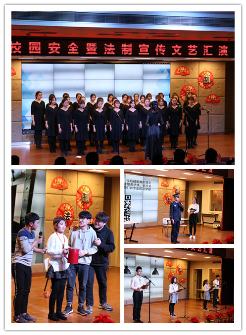 为进一步贯彻“七五”普法相关要求,提高广大师生尊法、学法、守法、用法意识,12月21日晚,由嘉定区司法局、工业区党工委、学校学保处以及各二级学院联合开展了校园安全暨法制宣传文艺汇演活动。