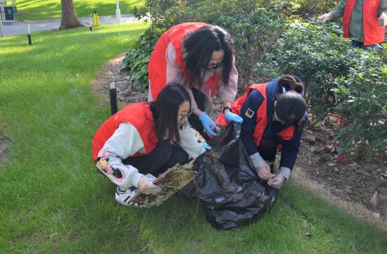 中午12时许,七组预备党员身穿红色马甲,纷纷拿着火钳、垃圾袋清理走道上的垃圾、草坪里的落叶。天华楼、日化楼、月华楼、明华楼、文化长廊内、东大门旁,处处可见他们辛勤劳动的身影,大家热情高涨,以劳动为荣。