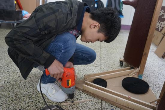 在比赛开始之前的准备阶段,队员们认真默契地组装着他们精心制作好的比赛道具,一遍又一遍地朗读着早已烂熟于心的台词,只为在接下来的表演中能向观众评委们呈现他们最好的一面!