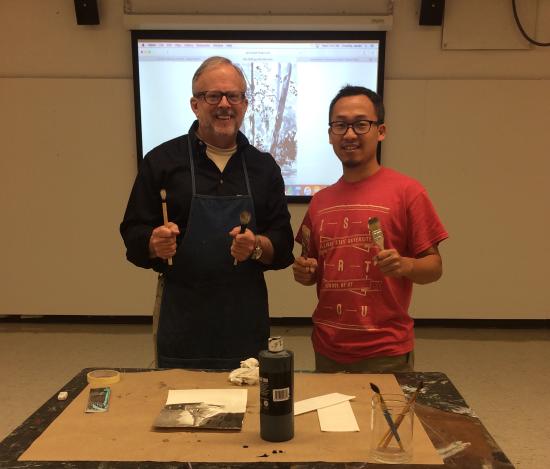 Expanded Media课程,是技术和艺术完美结合的课程,课程中Frank Brian教授教会大家设计图形标准,并在雕刻工作室进行二维雕刻和三维打印,完成从概念设计到产品生产的全部过程,并将作品在学院展览馆进行展出。在后半学期,Brian教授更是教大家编写程序,使用微处理器和感应器设计制作一件交互装置作品-这正是人工智能和机器人设计的核心技能。教授要求大家出30个方案草稿,并绘制出来,然后选择其中5个进行全班论证。他并不急于要求大家把创作做成一件可见的或实用的产品,而是希望在创造理念上进行创新和提升,让装置艺术有更多的可能性,他引导大家将话题进行深入讨论,在意识形态上进行挖掘,围绕一个话题甚至可以讨论一节课。