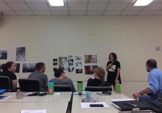 Shekara Achana教授的Intern in design课程,是工作室化教学的典型方式。艺术设计学院有个专门的设计工作室Design Streak Studio,工作室建立于1981年,是艺术学院的传统,每年的运行由教授上课的方式带领学生进行商业设计。我在跟随这个只有7个人的班级时,经历了多轮“接待客户-设计项目-投票-讨论-跑项目-参观4A广告设计公司”等等。这些经历对学生来说非常宝贵社会实践经历。Achana教授上课的一大特点是充分利用社交网站Facebook,我注意到,她几乎每时每刻都活跃在Facebook上发话指导学生作品和作下一步计划。